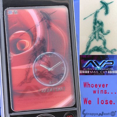 プライバシーと液晶画面の保護 映画で有名の、エイリアンとプレデターがメールカットになった!汚れやキズからガードしながらプライバシーを守ってはくれるが、食べられないように要注意?!