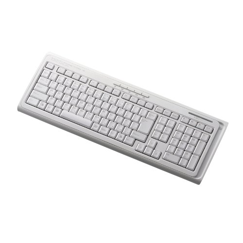 快適なデスクトップ環境を実現するワイヤレスキーボードノイズに強いDS-SS方式(直接スペクトラム拡散方式)を採用した2.4GHzワイヤレスキーボードです。使用する場所が非磁性体で最長約10m、スチールデスクなど磁性体でも最長約3mという広範囲な場所での操作を可能にします。ワイヤレスタイプなので、わずらわしいケーブルから解放され、より快適なデスクトップ環境を実現できます。薄くてスタイリッシュなフォルムに加え、キートップの文字にはデザイン性に優れたオリジナルフォントを使用し、リビングをはじめ様々なシーンで違和感なく使用できます。パンタグラフ方式キートップ全体をパンタグラフが支える構造になっています。垂直にストロークさせることができるので端押しに強く、薄型構造なのでほとんどのノートパソコンに採用されています。傾斜角調節スタンド付傾斜角を2段階で調整できる傾斜角調節スタンドを装備しています。9種類のホットキー付Webブラウザやメディアプレーヤーの機能などを、専用キーを押すだけで実行できる9種類の「ホットキー」を装備しています。電池残量お知らせランプ装備単4形乾電池2本で動作し、電池容量が少なくなると赤色に光る電池残量お知らせランプを装備しています。Windows Vistaプレミアムロゴ取得商品Windows Vistaプレミアムロゴを取得していますので、Windows Vistaでの使用にも最適です。【付属品】・動作確認用単4形アルカリ乾電池2本・マニュアル