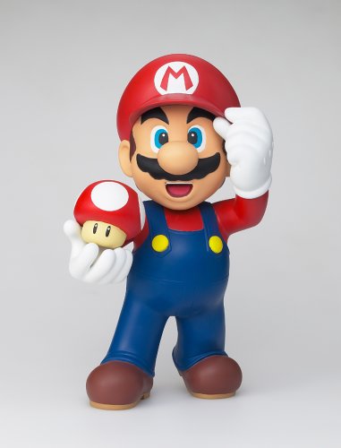 アメリカではミッキーの人気を抜き、ハリウッドで実写の映画も作製された世界のヒーローマリオが初のソフビ化とは驚いた。マリオの小さなフィギュアはよくあるし、今まで特に気にもしなかったが大きなサイズも既に作られていると思っていた。作製はモデル作りではピカ一のバンダイだけに3Dマリオの実物そっくりの出来映え。全長は30センチと存在感があり、スタンドなしで自立する。有名なキャラなので自信を持って玄関に飾れるだろう!!次はルイージに期待か。歴史に残りそうなキャラクターだけに永久保存版的なフィギュア。
