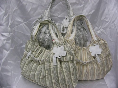 先染め サッカ素材ストライプバルーン型手提げバッグ ☆送料無料☆