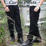 スタイリッシュ スリム カーゴパンツ メンズ ブラック 黒 カジュアルパンツ [s123-b]