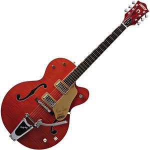 Professional Collection : Brian Setzer Models(プロフェッショナルコレクション:ブライアン・セッツァーモデル)最新のブライアン・セッツアーNashville®シグネイチャー・モデルは、ブライアンのスペックに合わせて、デザインしなおし製作しました彼が所有するヴィンテージ・ギター・コレクションを参考にし、また彼の好みである59年モデルに合わせ、よりソリッドなフィーリングとフルにサステインが得られるブレイシングを再現しました。カラーは、オレンジとグリーン・タイガー・フレイム・フィニッシュをご用意しています。G6120SSU は、TV Jones® Classicピックアップ、Sperzel®ロッキング・チューナー、ピン仕様Adjusto-matic™ ブリッジ、Bigsby® B6CB ヴィブラート・テールピースをフィーチャーしています。ホワイト・ダイス・コントロール・ノブポリッシュド・アルミニウム、ニッケル・メッキ・ハードウェアネオ・クラシック・サム・ネール・インレイ・ポジション・マーカーホースシュー・ヘッドストック・インレイフィンガーボード・バインディングデルリン・ナット1959スタイル・トレスタイル・ブレイシングマルチ・レイヤー・ボディー・バインディングオーバー・サイズド・F-ホールブライアン・セッツアー・シグネイチャー入りゴールド・プレキシ・ピックガードブライアン・セッツアー・ネーム入りアジャスト・カバーシャーラー・ストラップ・ロックアジャスタブル・トラス・ロッド